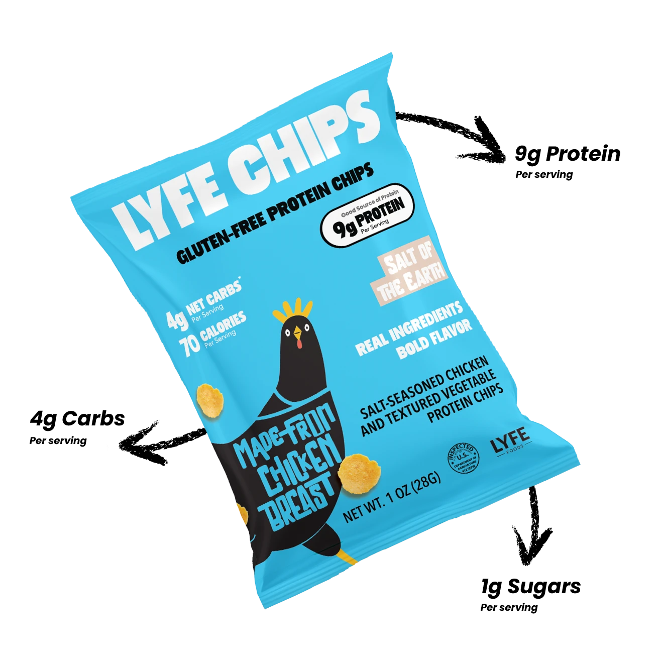 🐔 Tasty flavors: LYFE Chips come in three well-loved flavors: Salted, BBQ Chips, and Jalapeno Ranch.
