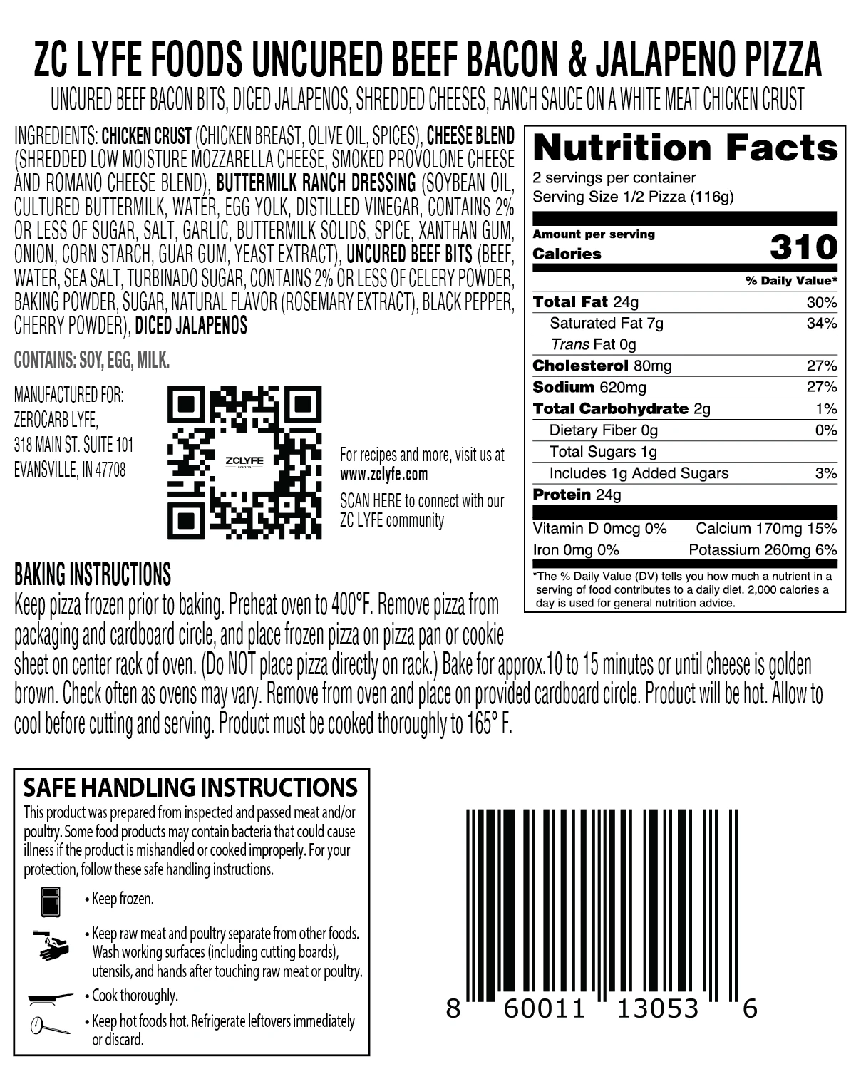 ZeroCarb's mouthwatering Uncured Beef Bacon & Jalapeno Pizza – keto-friendly, gluten-free, and protein-packed. Ready in 15 minutes in the oven or air fryer.