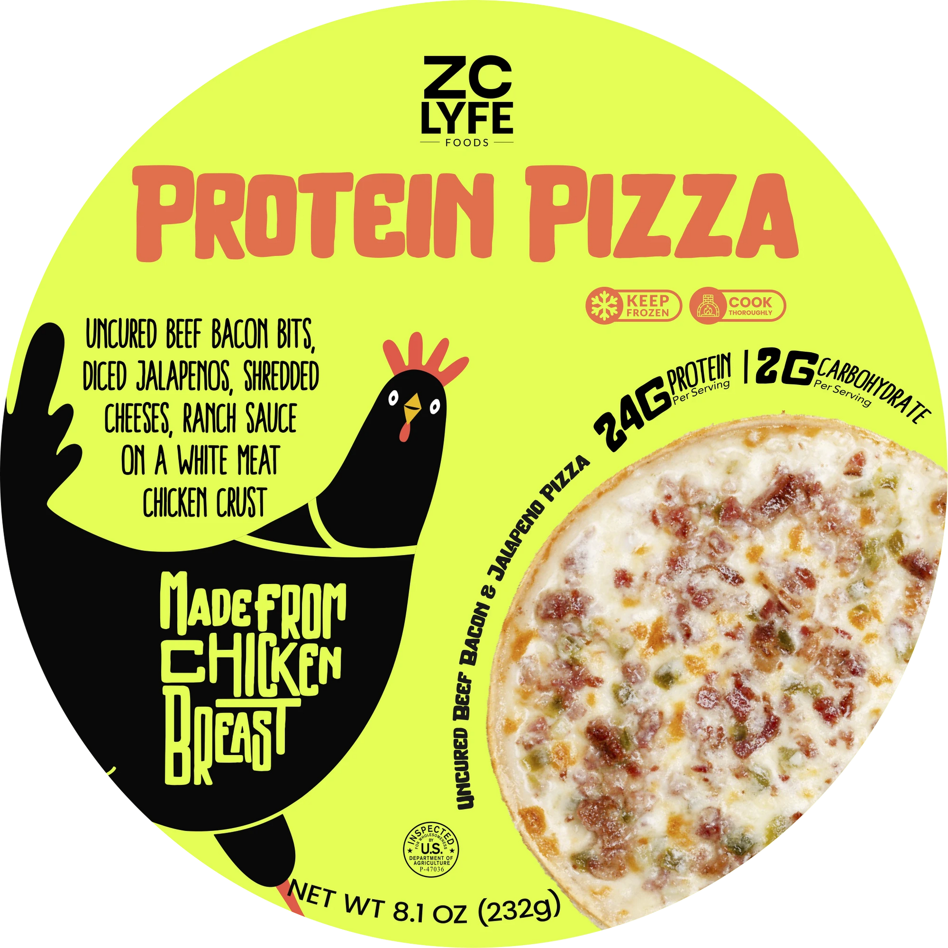 6 Low Carb, High Protein Beef Bacon & Jalapeño Pizza - on a 100% Chicken Crust