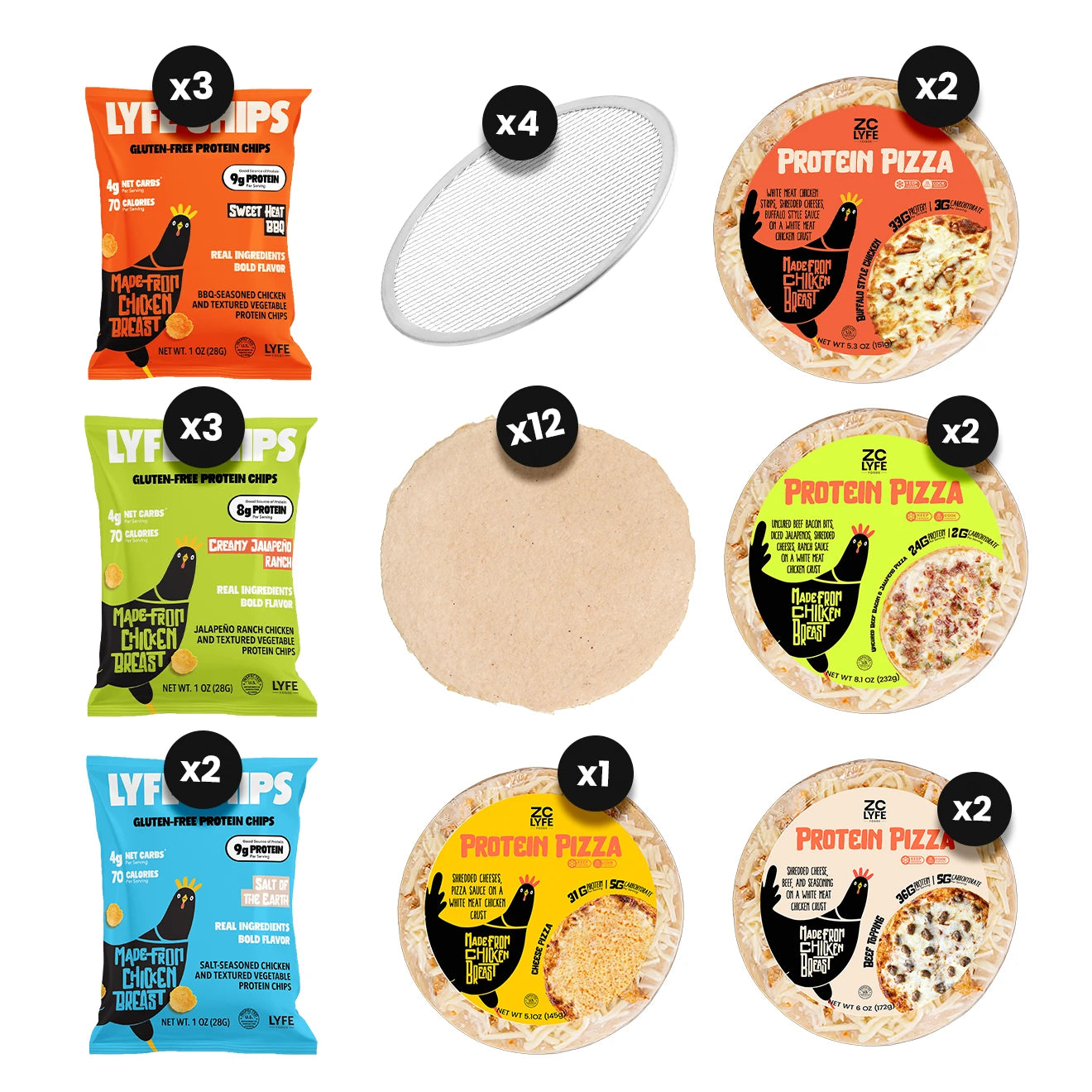 - 8 LYFE Chips (3 BBQ / 3 Jalapeño Ranch / 2 Salt of Earth): the perfect balance of crunch and macros.